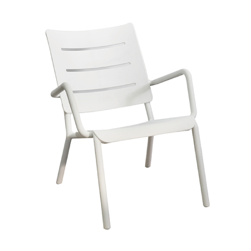 - 椅背微傾斜悠閒的角度,塑料椅面清洗方便